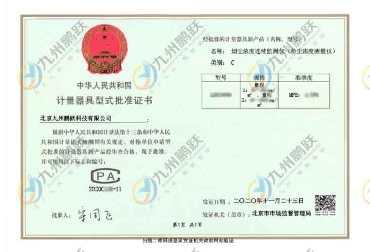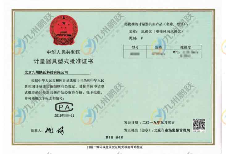 計量器具型式批準證書