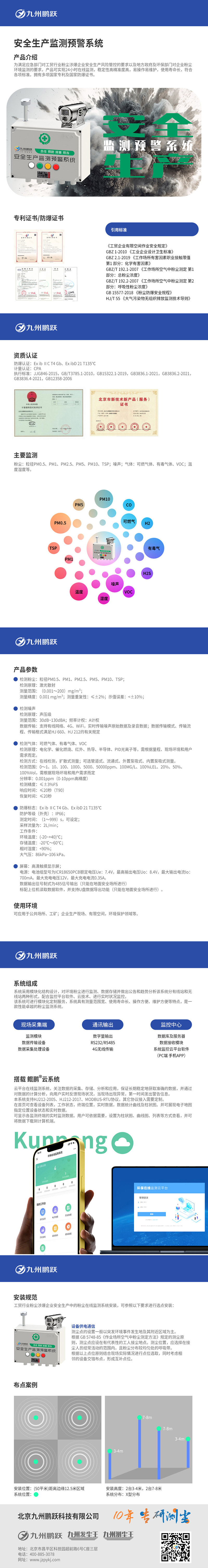 主要監測粉塵粒徑PM0.5、PM1、PM2.5、PM5、PM10、TSP;噪聲;氣體可燃氣體、有毒氣體、VOC;溫度濕度等。
